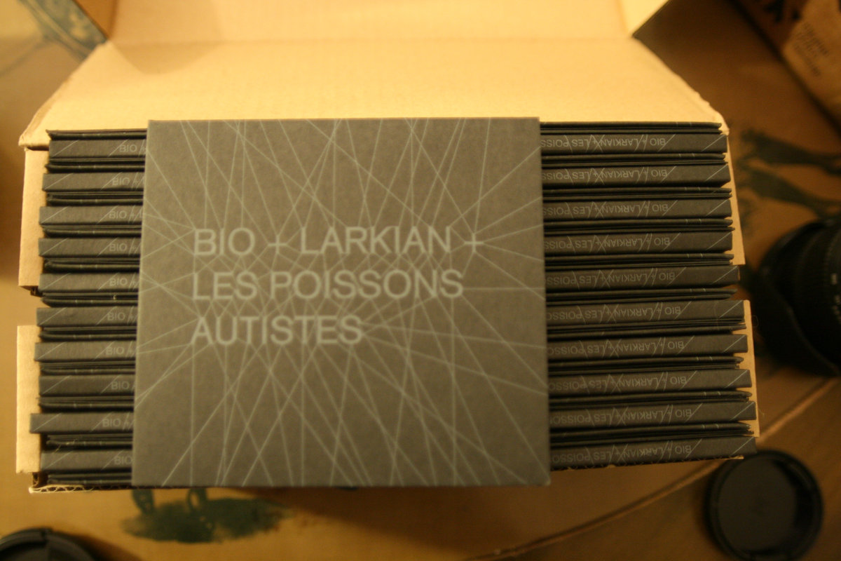 Bio + Larkian + Les Poissons Autistes’s record is the result of a remote collaboration that occurred through the exchange of files between those three Swiss bands from the experimental and electroacoustic scene. Within seven tracks, the musicians explore and mix up their various backgrounds, going from folk to electro, through jazz, post-rock, metal, country-western, classical music and even Mongolian traditional folklore, with a lot of noise in the midst. All that could be summed up by the fifth track: "Vous faites vraiment trop chier" (which translates roughly as: « You fuckers »).