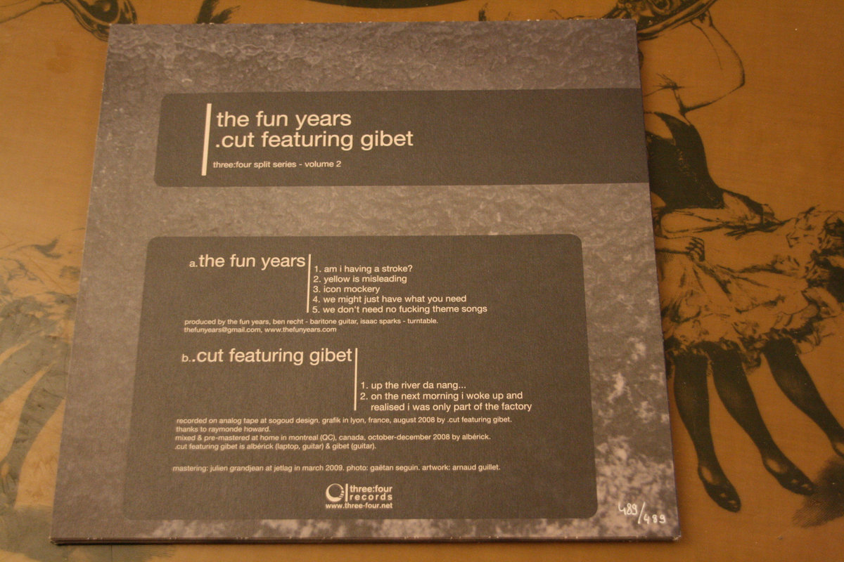 Two is the right number to symbolize this release. Here is the second volume of our split series that highlights 2 two-man bands living in two different cities. Whereas the fun years live in different parts of the United States, .cut is based in Montreal and Lyon, where gibet, Albérick's accomplice, lives. Musically, this record gathers two of the most exciting laptop & guitar duets.